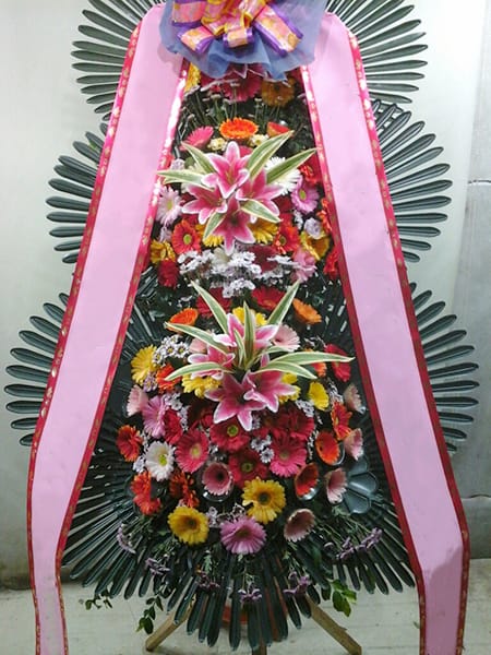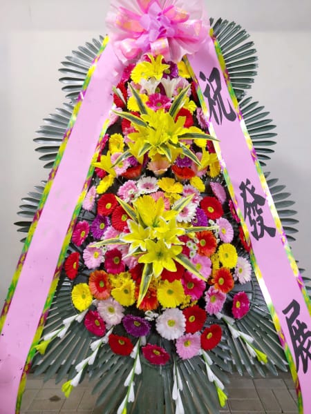 탁구회원분의 결혼을 축하하기 위한 3단화환